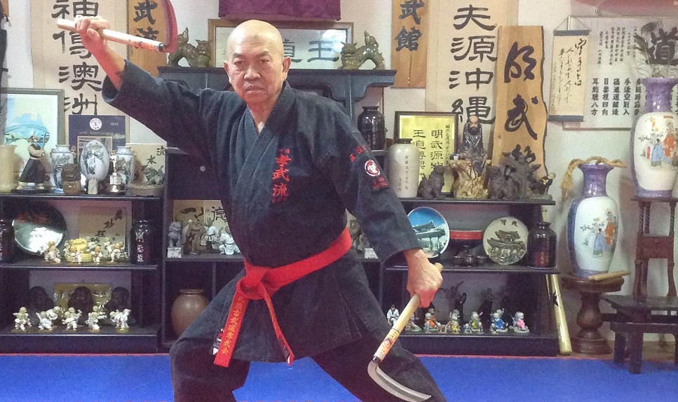 A farming implement for cutting cane and grain. Usually used in pairs in the hands of an expert this is indeed a formidable weapon. Only practitioners of a high grade train with this weapon using live blades.