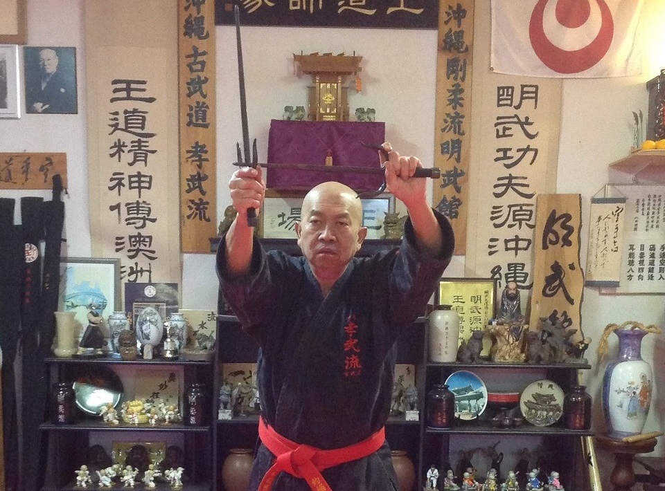 Te:hand naka:middle. Sharpened wooden stick(s) with additional spike protrusion. Extremely effective close range self defence weapon. In some Australian states you must obtain a license to carry this weapon.